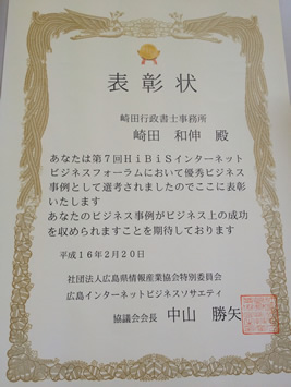 2004年Hibisインターネットビジネスフォーラム 優秀ビジネス事例 採択