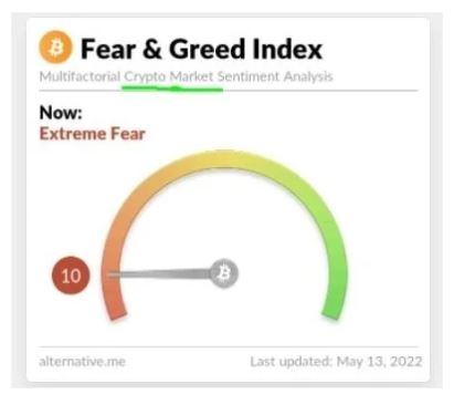 暗号資産の同指数は10。こちらも極端な恐怖状態。