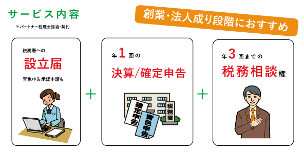 税務署、県税、市税事務所への会社・法人設立届もサービス内容に入っています