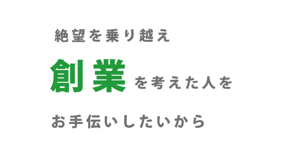 お手伝いする理由は、絶望を乗り越えて、創業という道を考えた人をお手伝いしたいからです。